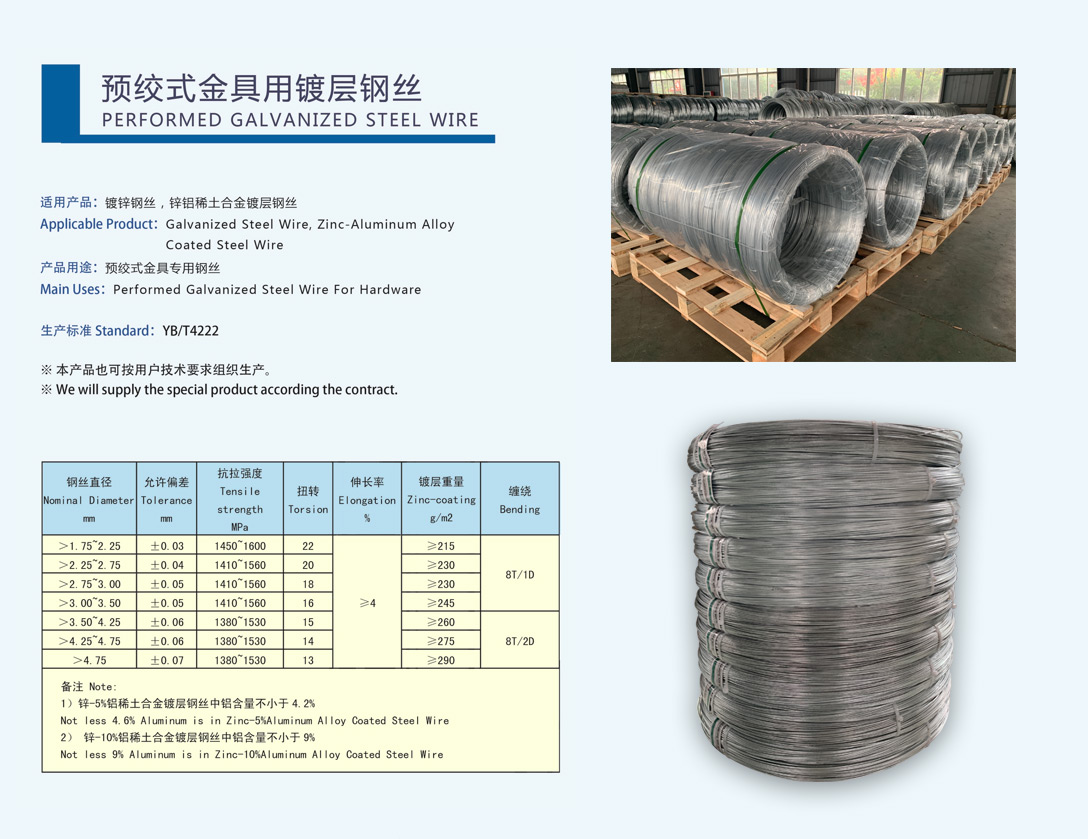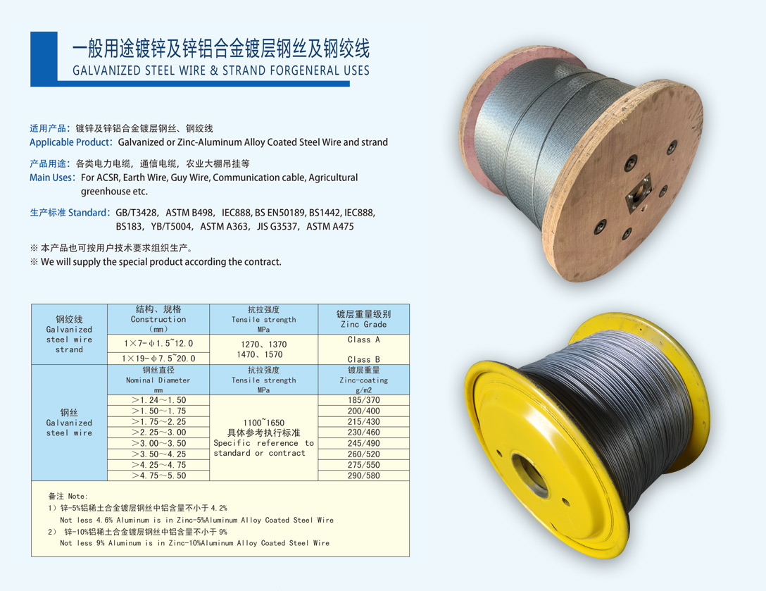 通信光電纜用鍍鋅鋼絲通信光電纜用鍍鋅鋼絞線機編鋼絲網(wǎng)用鍍層鋼絲防振錘用鋼絞線一般用途鍍鋅及鍍鋅鋁合金鍍層鋼絲及鋼絞線預(yù)絞式金具用鍍層鋼絲制釘用鍍層鋼絲